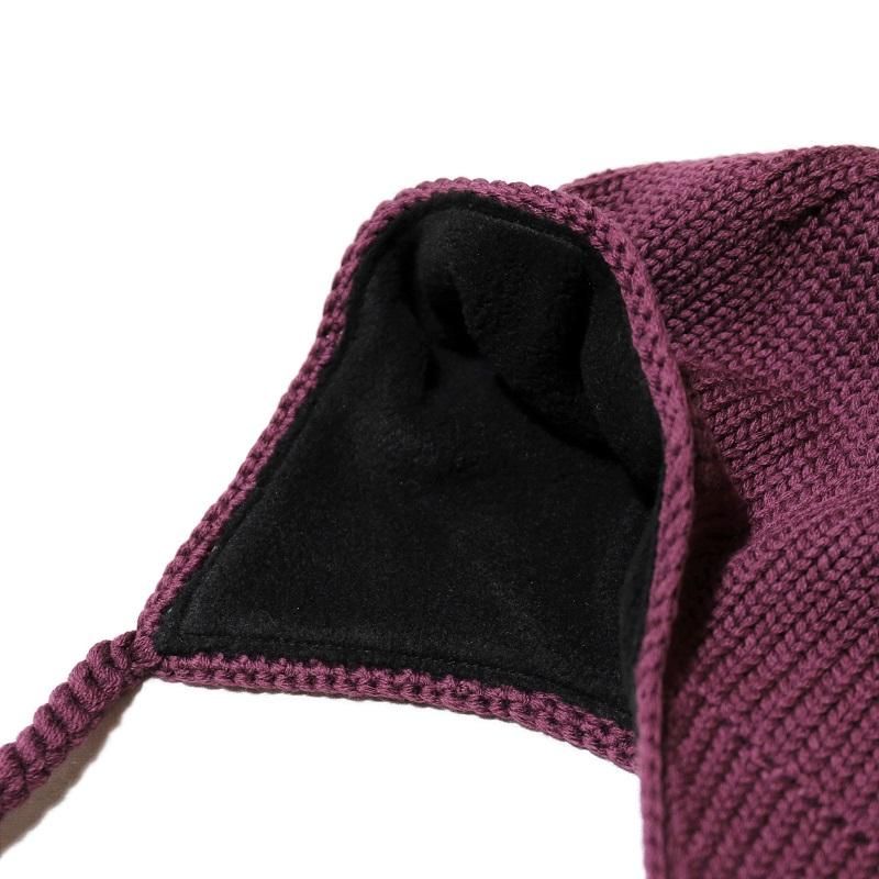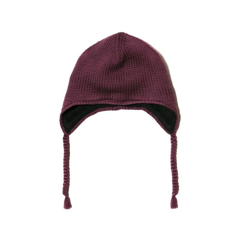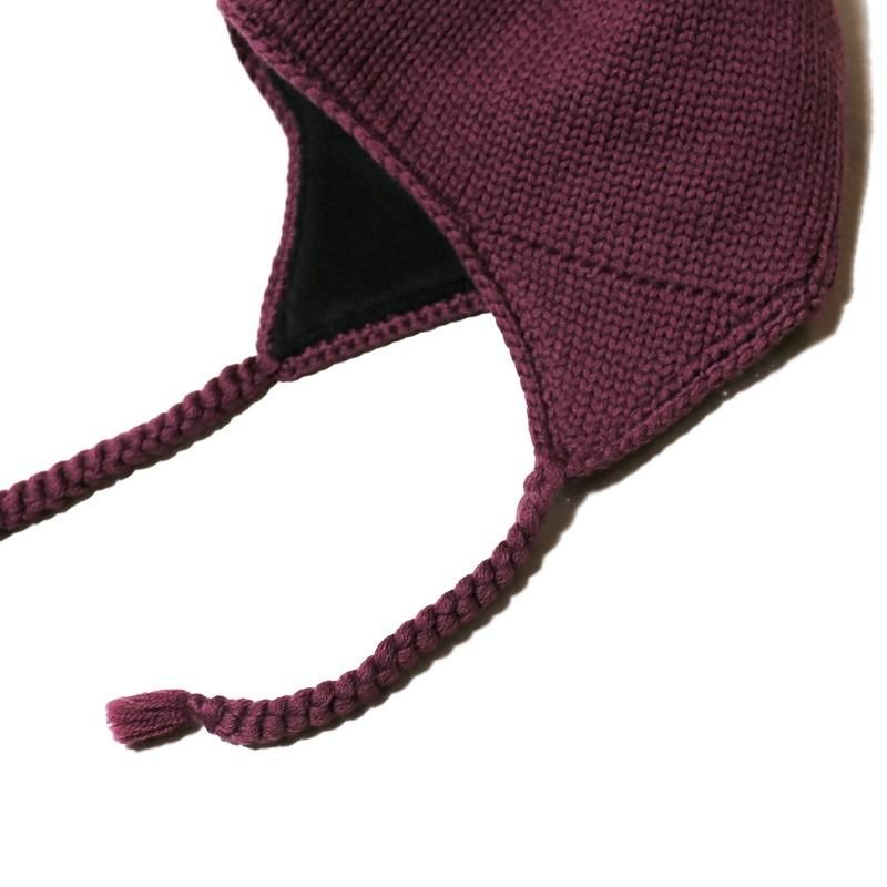 表地をウール、裏地をポリ×レーヨンで作製し、確かな保温性をもった紐付きニットCAP。