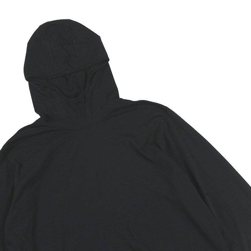 ベースレイヤーとしても活躍するレギュラーシルエット、メリノウールのフード付き長袖カットソーです。
