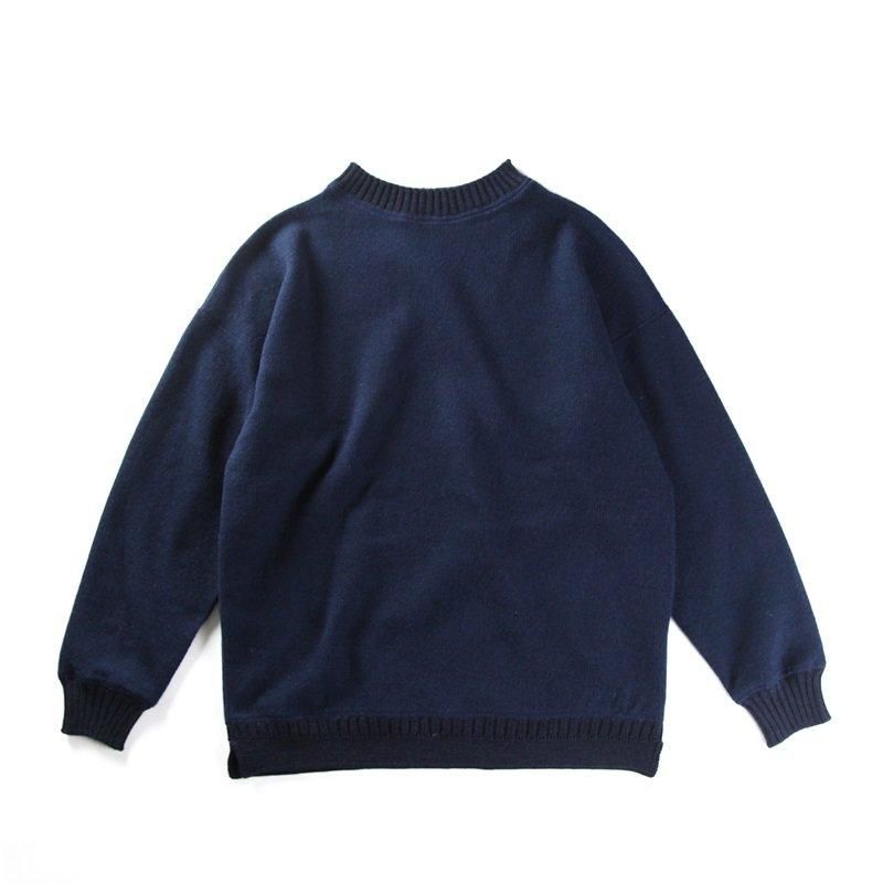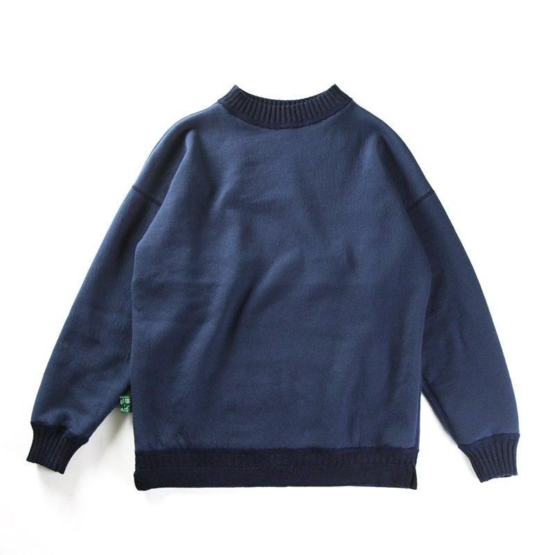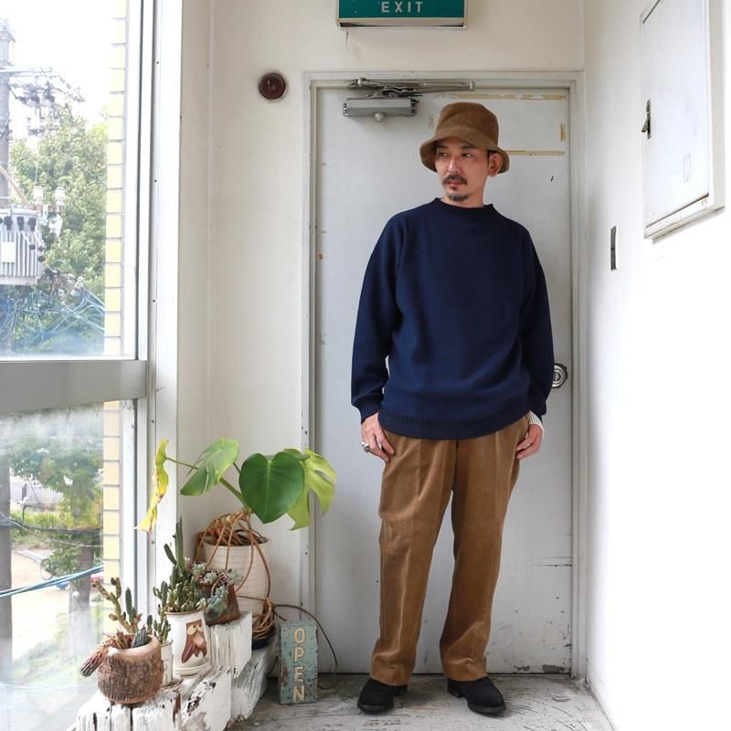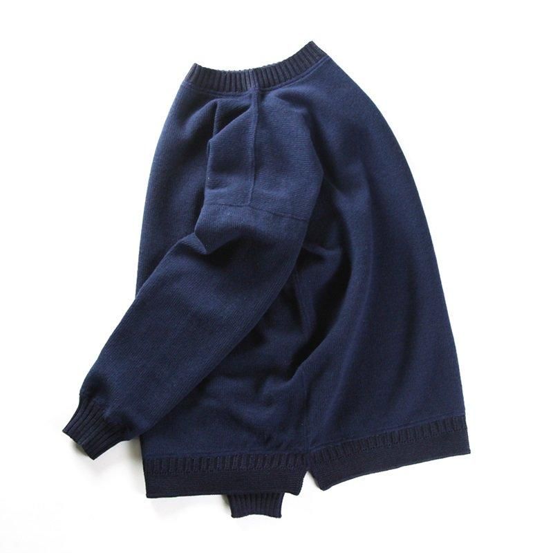 本来であればウールのニットであるガンジーセーターで味わえる雰囲気を、そのアウトラインを活かしつつコットン100%で再構築した今作は、秋から春先にかけて1枚でもインナーとしても活躍してくれる1着です。