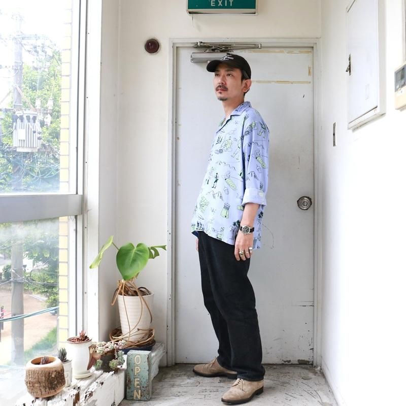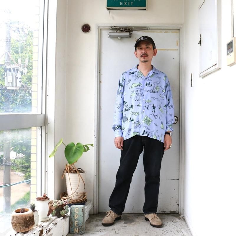 6年ぶりの再生産となったジェリー鵜飼氏による山をイメージしたイラストをプリントしたオリジナルアロハ生地にて製作。