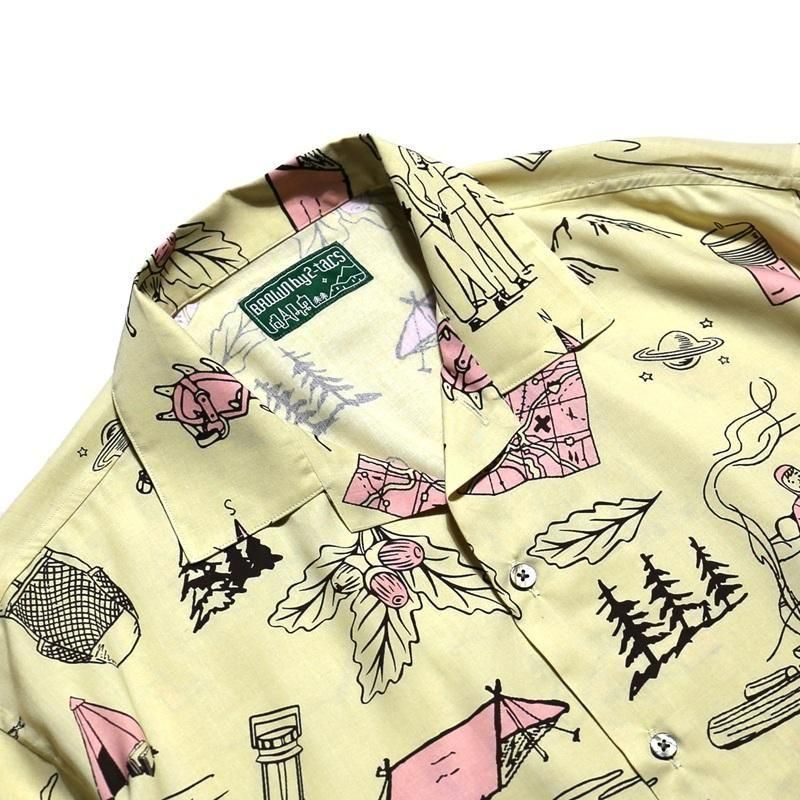 アロハシャツなのに柄のモチーフは全て山絡みという、ちょっとひねくれたBROWN by 2-tacsオリジナルアロハです。
