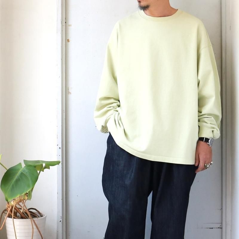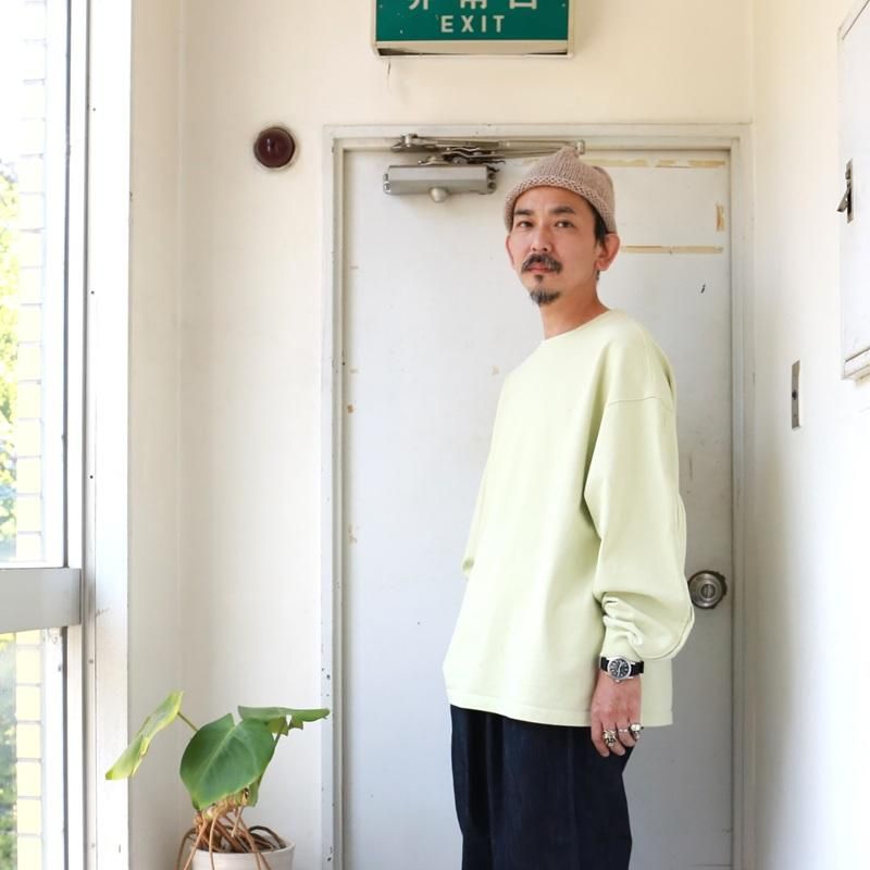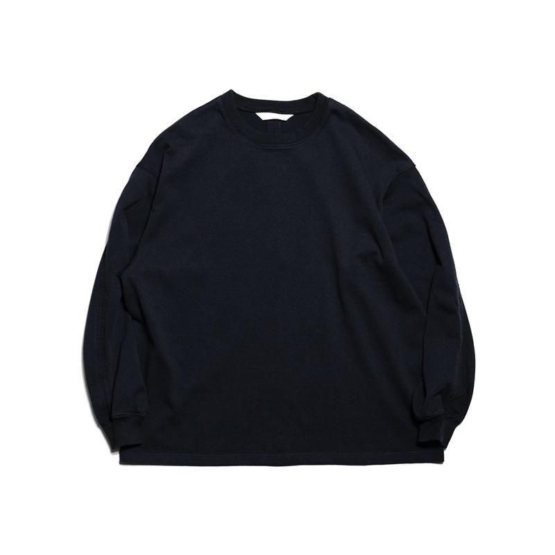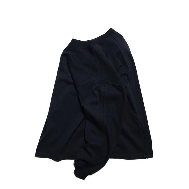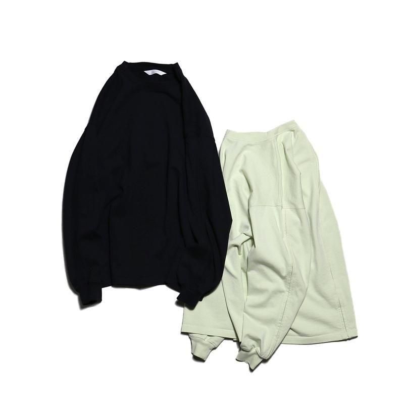 空気の力で糸を撚り合わせる特殊な製法で紡がれた糸を引き揃えて度詰めで編んだ天竺にて製作した長袖カットソーです。
