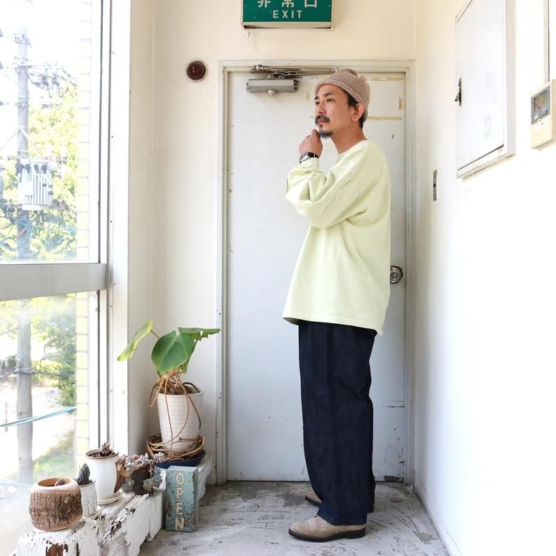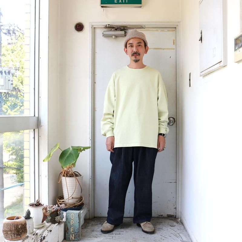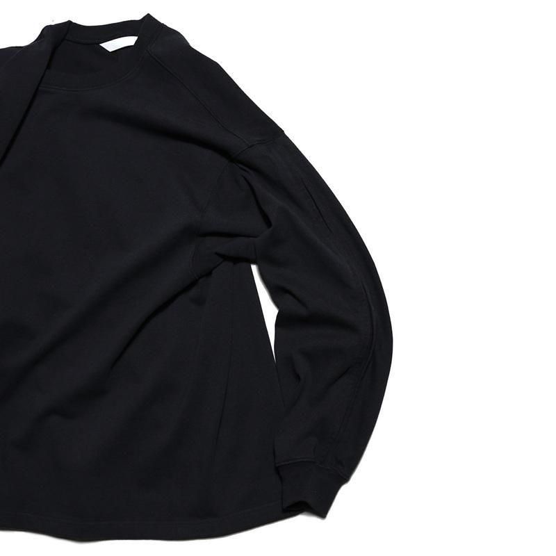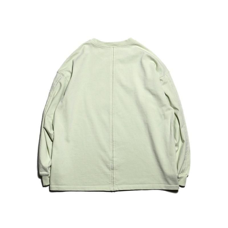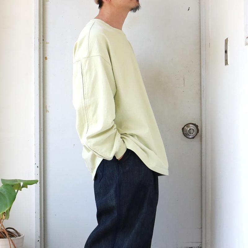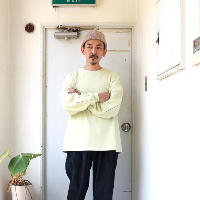 空気の力で糸を撚り合わせる特殊な製法で紡がれた糸を引き揃えて度詰めで編んだ天竺にて製作した長袖カットソーです。