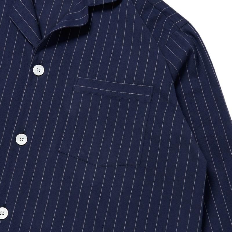 また、パジャマとしてはありえないピッチの細かさと丁寧な仕立ては、ドレスシャツの縫製工場によるもので、パジャマ・シャツでありながらラフ過ぎず品の良さも備えています。