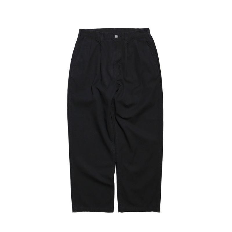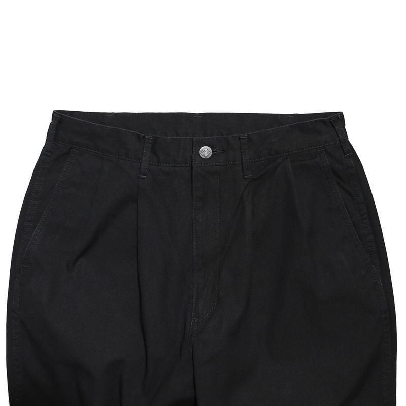 2プリーツで腰廻りにゆとりを持たせたワイドテーパードシルエット。
