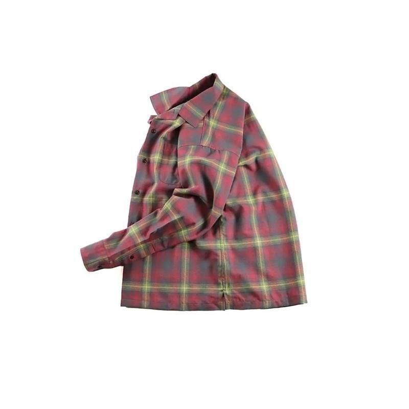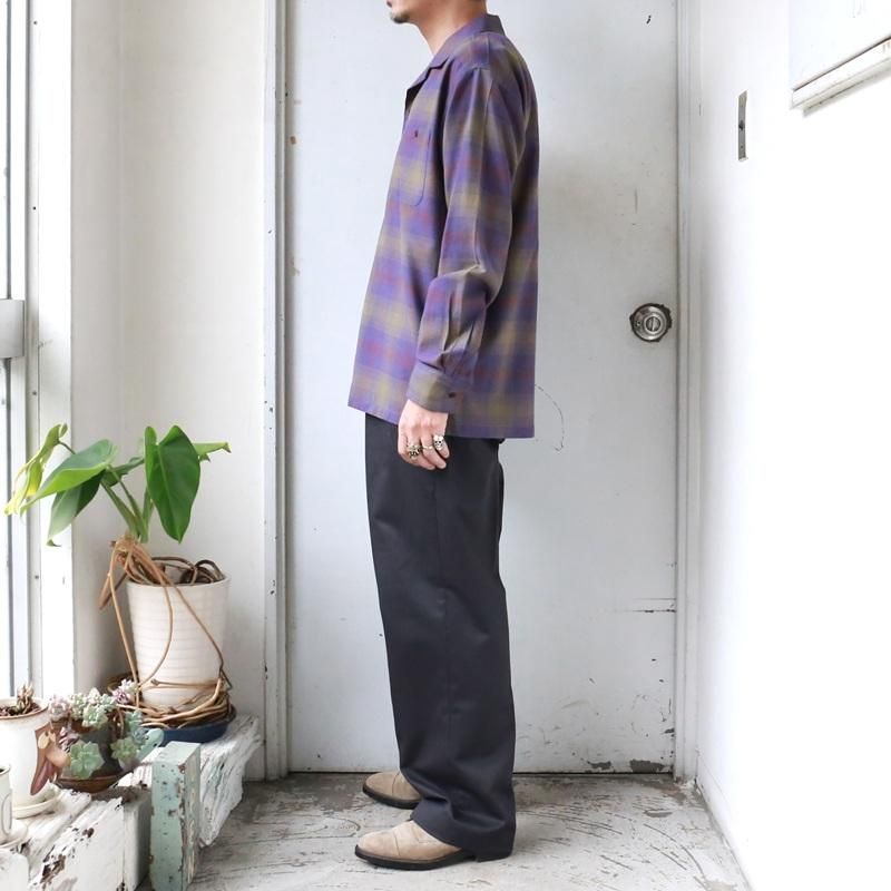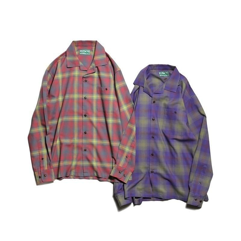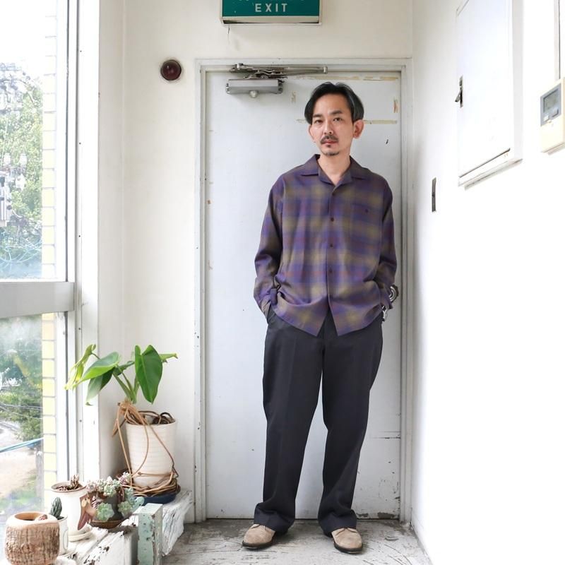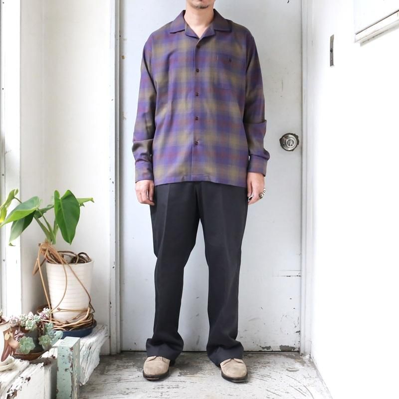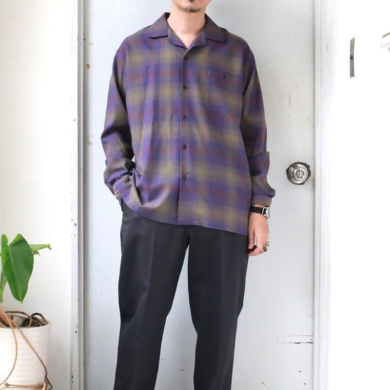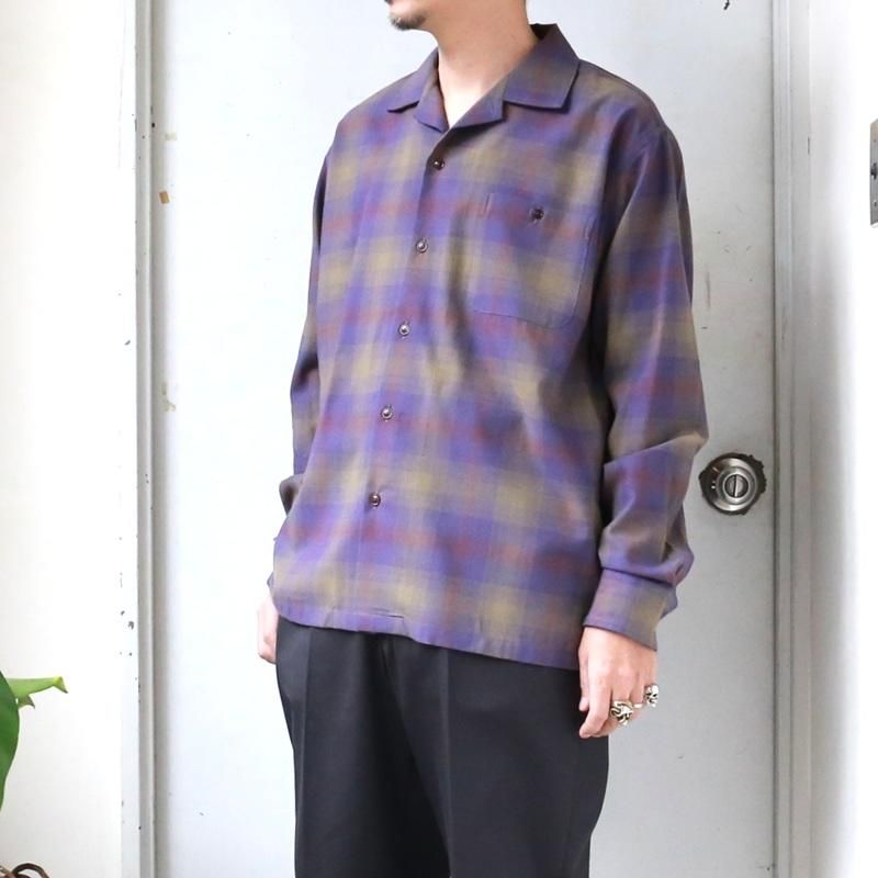 BROWN by 2-tacsオリジナルファブリックである"Wool nylon dry check"にて製作した"Open collar L/S"。