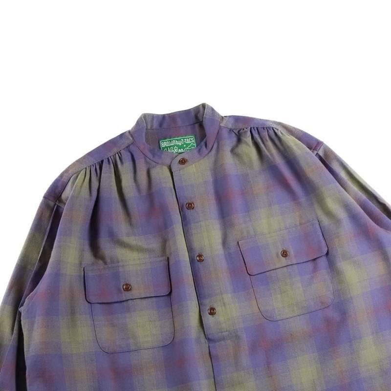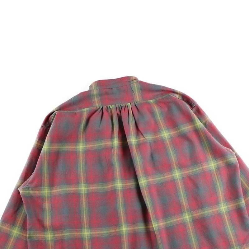 身頃と袖の様々な箇所にタックやギャザーを配し、運動量を大きく取ったシャツ。