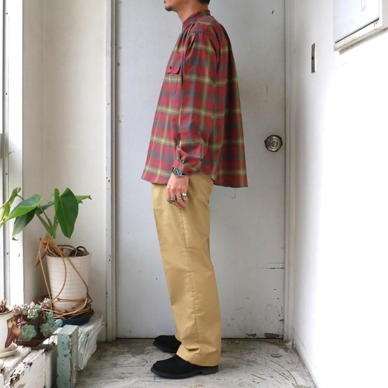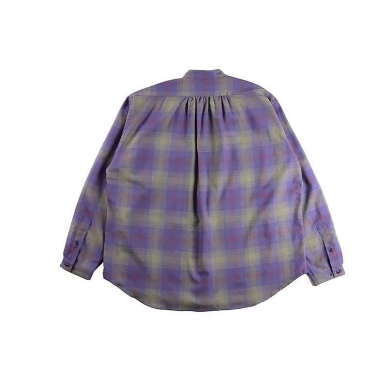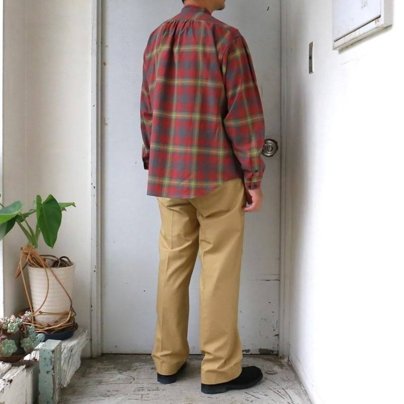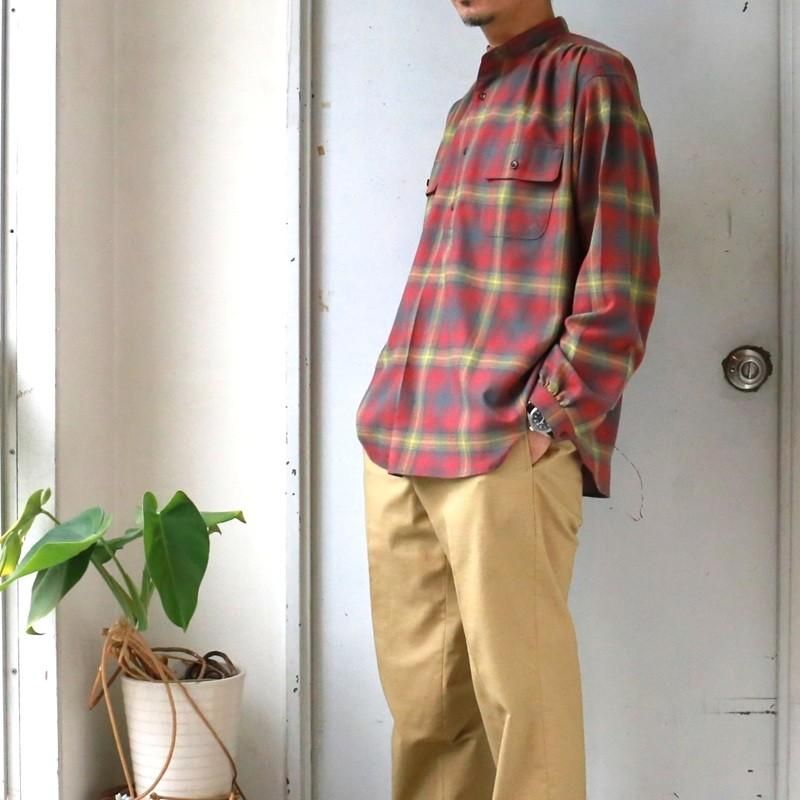 オリジナルファブリックである"Wool nylon dry stripe / check"を使った"Stand collar"。