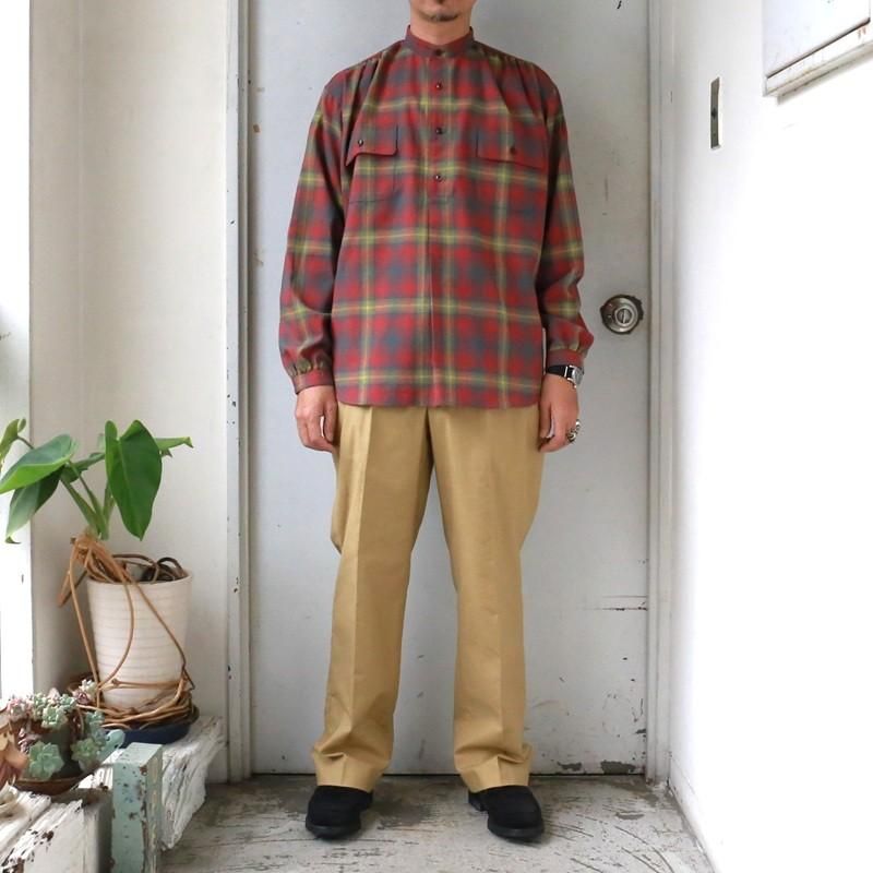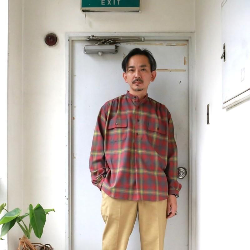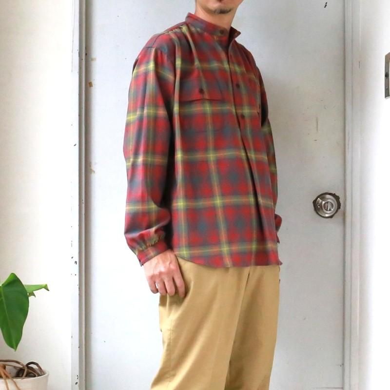 たっぷりとしたプルオーバーのシルエットと、すっきりした印象のスタンドカラーは、コーディネイトに変化を与えてくれそうです。