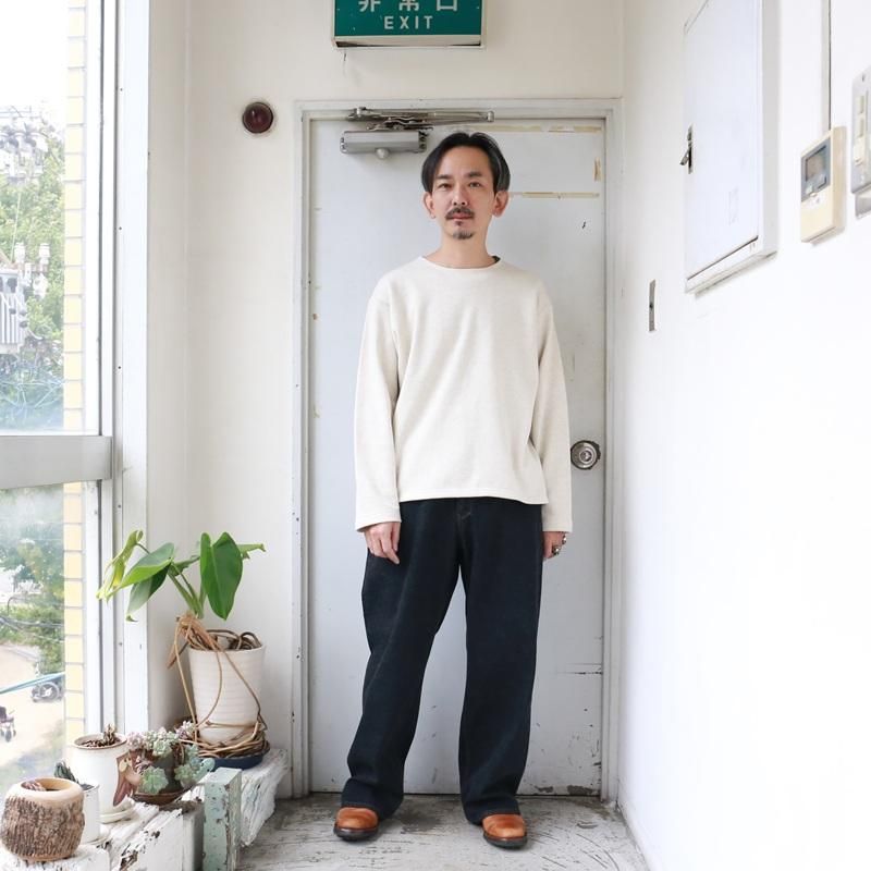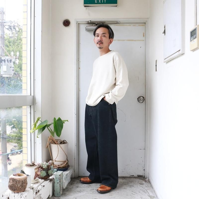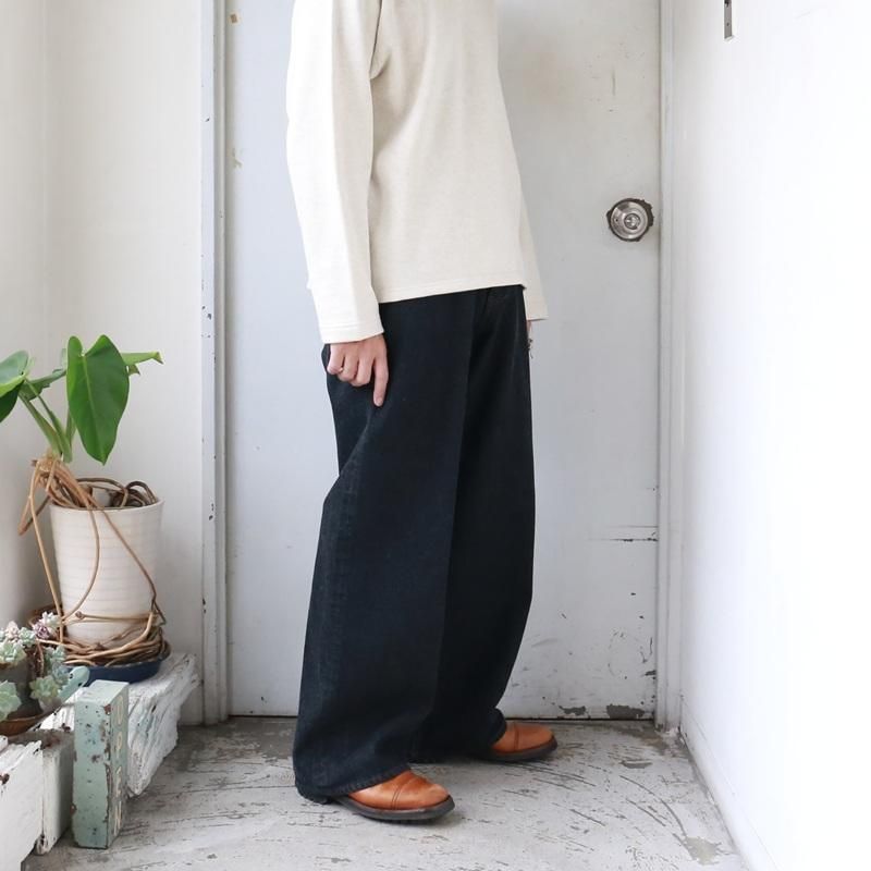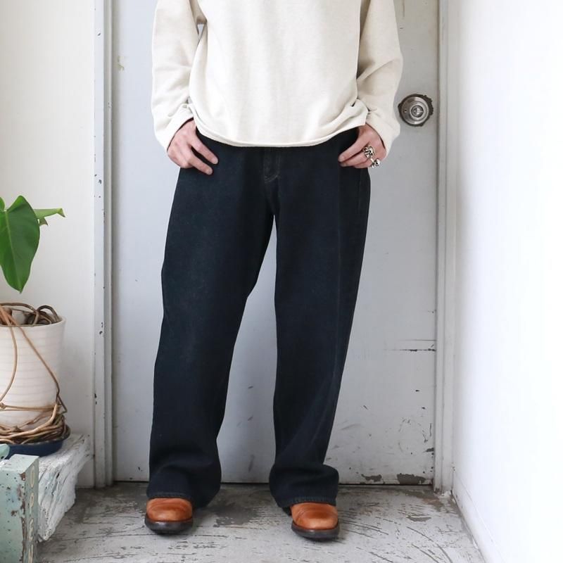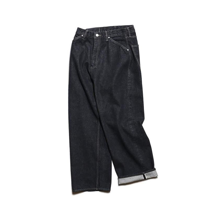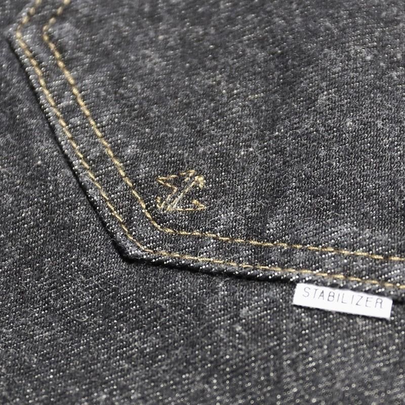 STABILIZER GNZオリジナルの13.5オンス・セルヴィッジブラックデニムにて製作した、極太のストレートシルエット。