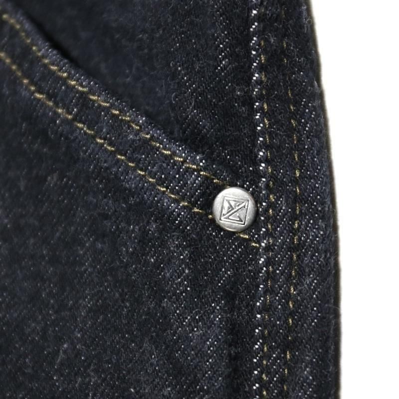 当時を彷彿とさせる、特徴的なオリジナルブラックデニムはワンウォッシュを施し毛羽立ちも再現しています。