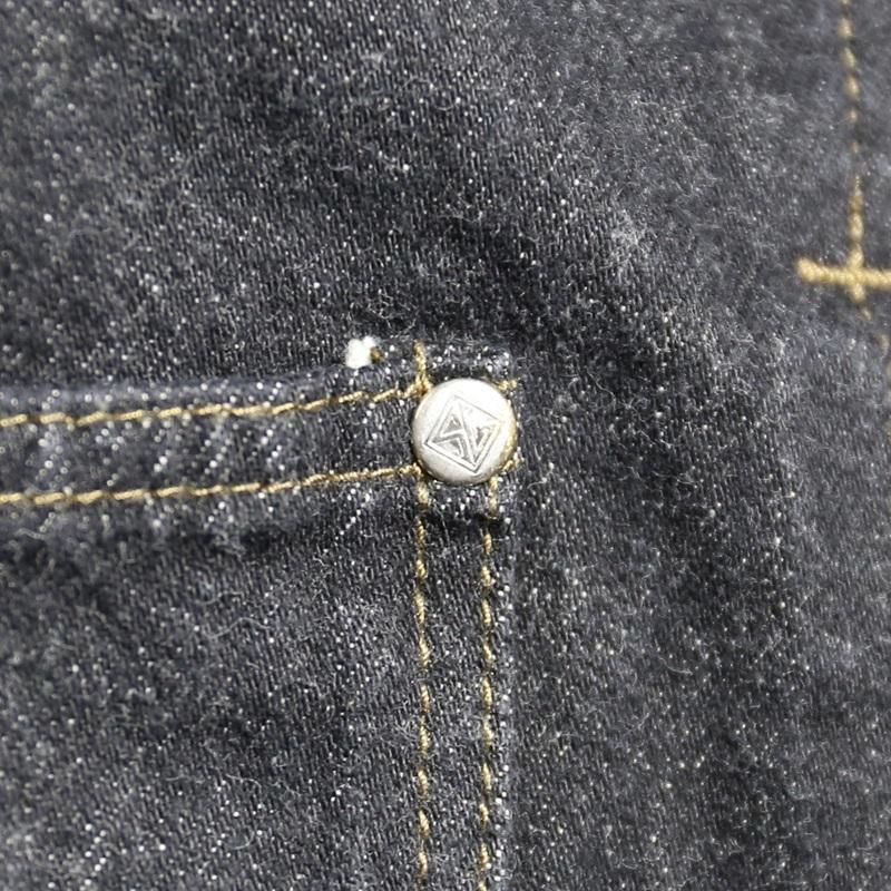 生地には"13.5oz selvedge charcoal black denim"を使用。