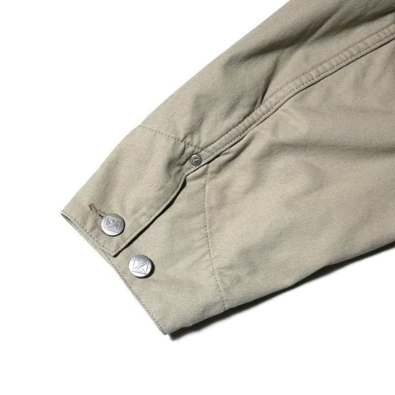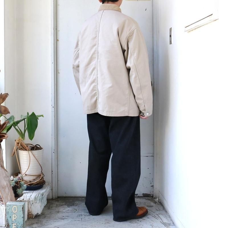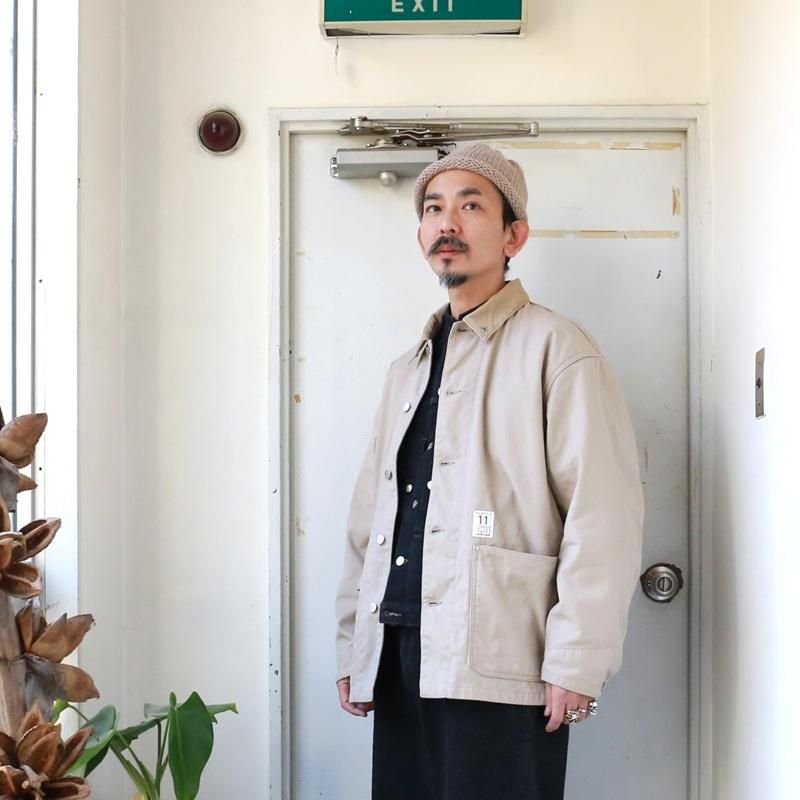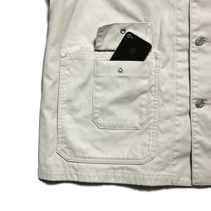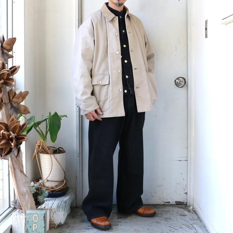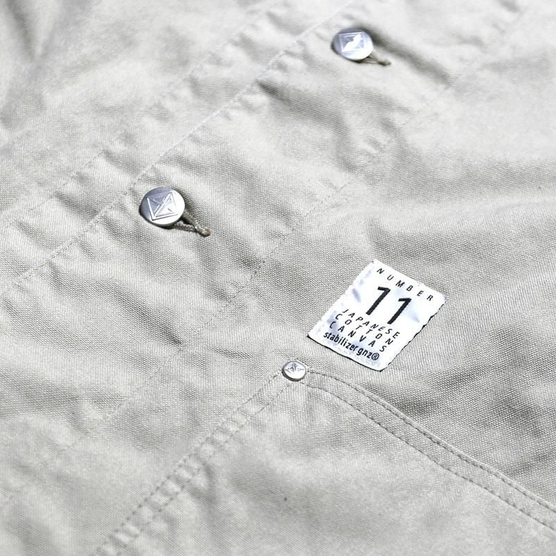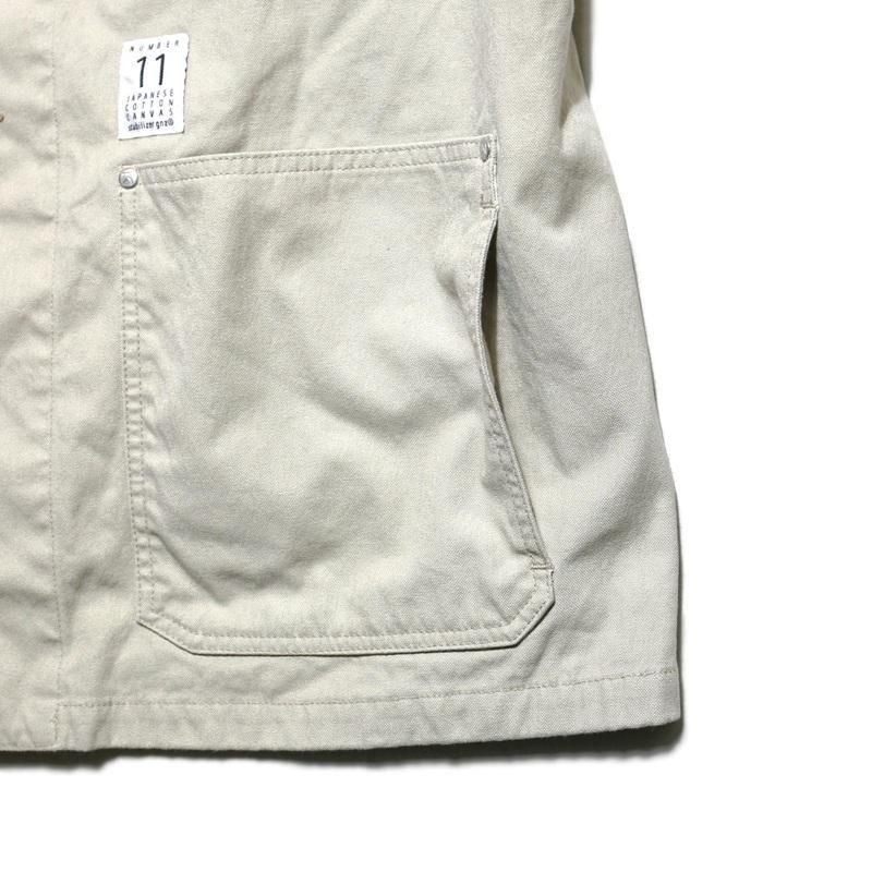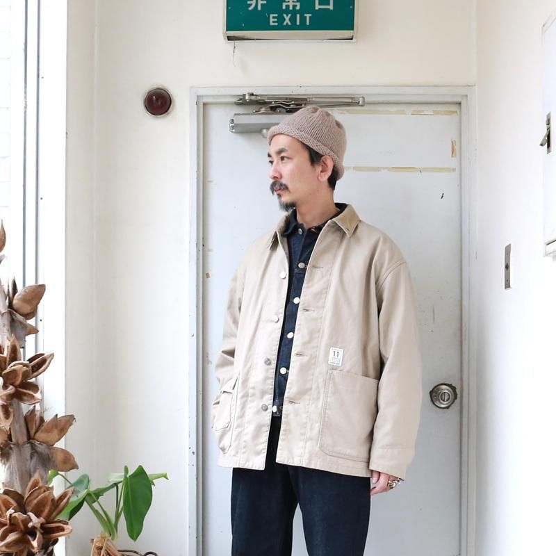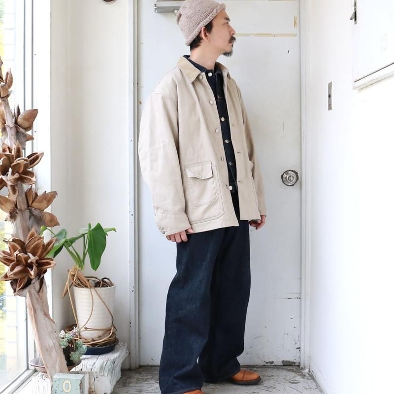 11号帆布にストーンバイオウォッシュを施し、キャンバス生地本来の持つタフさと軽やかさを備えたカバーオールに、当店から乾いたイメージのS.beige(サンドベージュ)をオーダーさせていただきました。